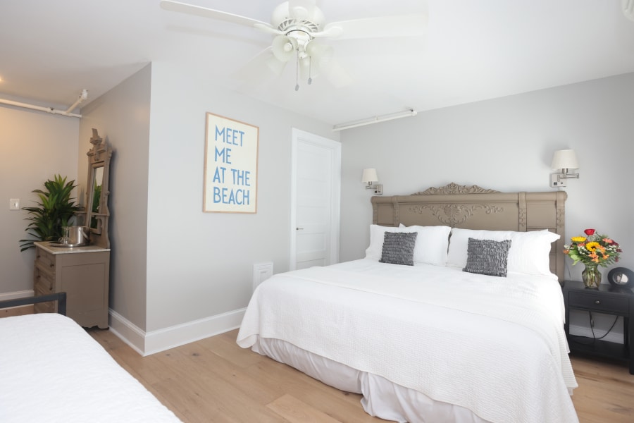 Located in the Annex on the 3rd floor, this spacious room offers a quiet location with a king-size bed, private bath as well as a separate twin bed. The perfect family-friendly lodging in Cape May for small families or groups enjoying a vacation on the New Jersey Shore.